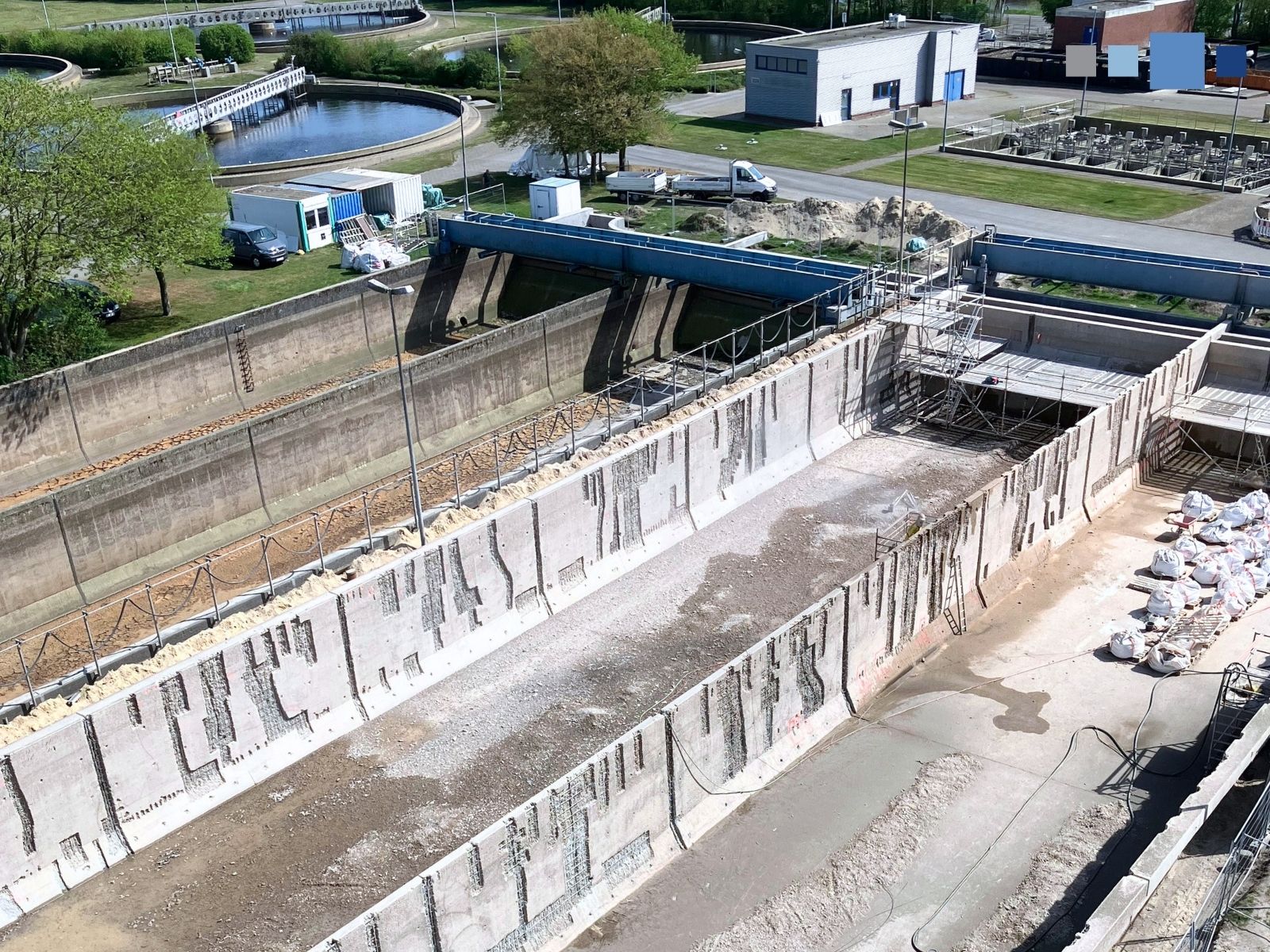 Ein Beispiel dafür findet sich in einem unserer Projekte in Oldenburg wieder. Hier wurden wir im Jahr 2023 vom Oldenburgisch-Ostfriesischen Wasserverband (OOWV) mit der Instandsetzungsplanung und Bauüberwachung der Regenüberlaufbecken (RÜB) der hiesigen Kläranlage beauftragt. Konkret geht es um die Planung und Überwachung der Betoninstandsetzung für eine Restnutzungsdauer von mindestens 25 Jahren.